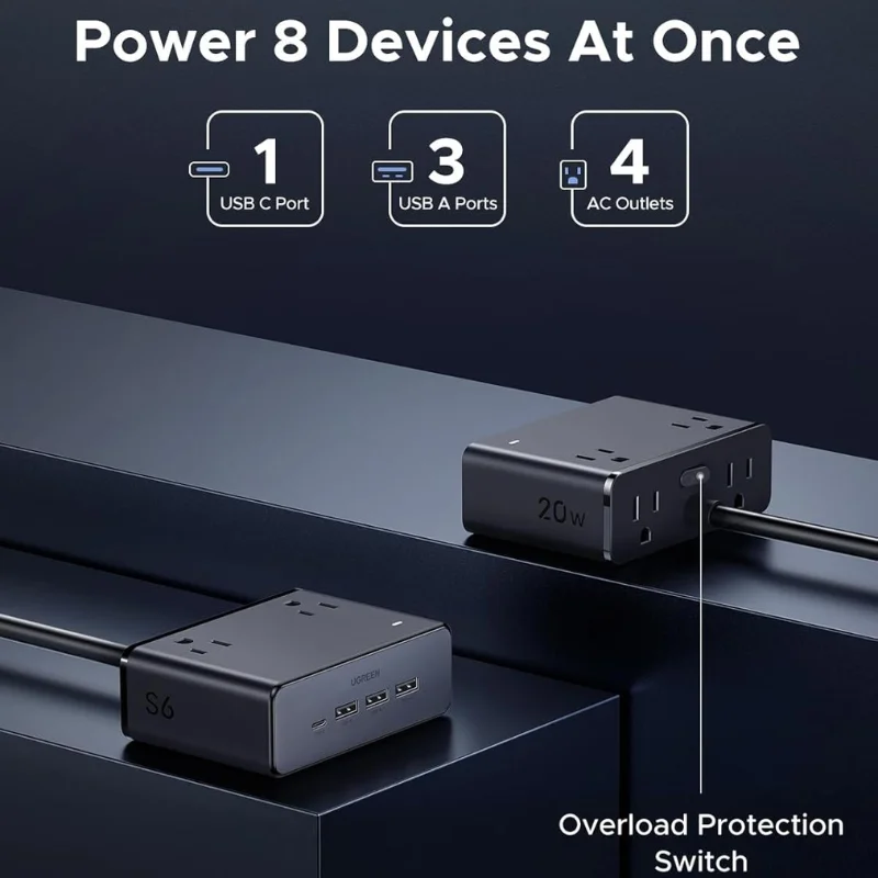 - 8-in-1 Multi-Port Design: Supports multiple devices simultaneously, including smartphones, tablets, laptops, and small household appliances.